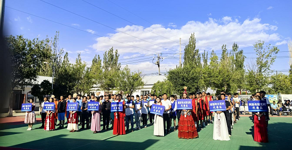 8月12日上午,比赛在庄严的升旗仪式后正式拉开序幕,黑孜苇乡党委书记做开场致辞,驻村工作队副队长代表第一书记做了发言,黑孜苇乡党委班子成员、各村群众及拉拉队员共计200余人参加了本次活动。